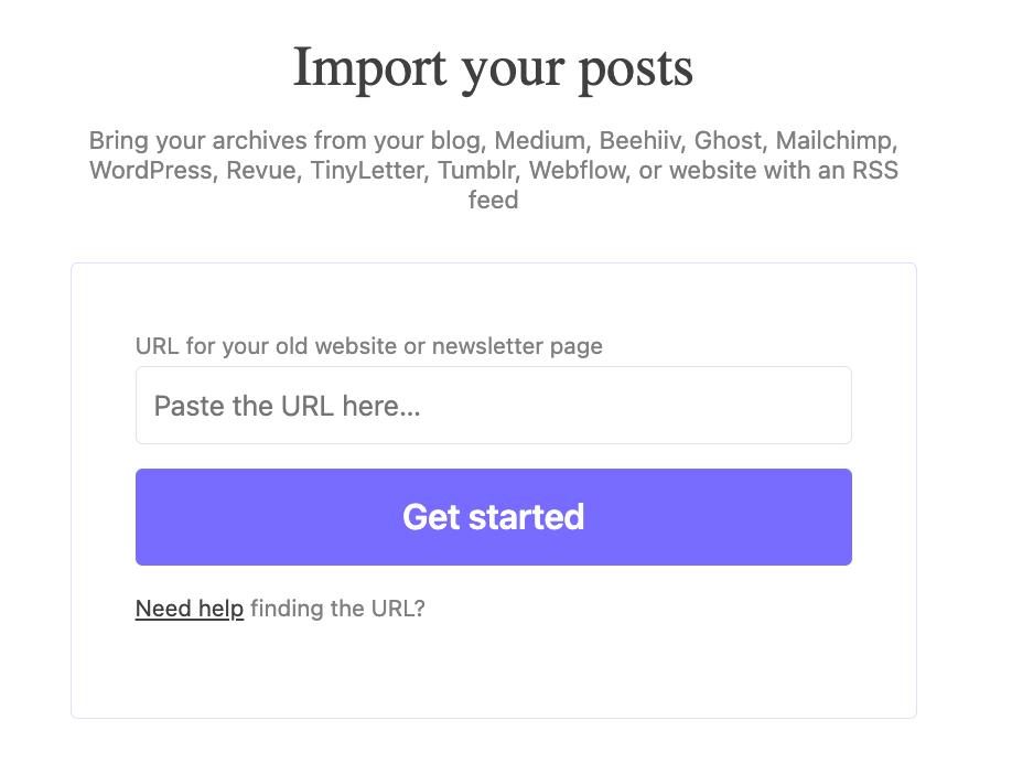 On Substack, you need to go to the import page