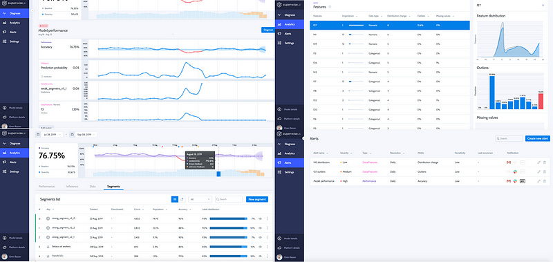 Superwise.ai — An Israeli Startup, By far the most feature-complete solution out there IMO. It includes black-box integration and can connect to any ML solution in production. It has smart & mature features such as real-time performance monitoring & analysis with various predefined KPI’s suited for models and data statistics, predictive intelligence that is based on machine learning models that learn and predict your model’s performance, auto-benchmarking, automatic handling & action-execution, out of the box explanation and bias detection and cloud or on-premise configuration. (Figure 8).