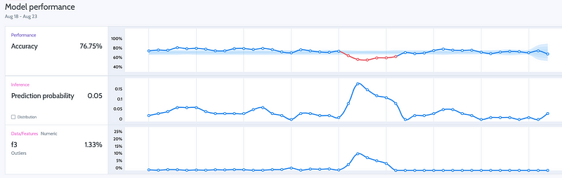 Similarly to model performance, there are metrics that were defined as part of the project and are extremely important for Business and Product. These metrics do not have to be the classical metrics that I mentioned above. For example, your model is used as a suggestive model, you are showing your client the top-3 choices based on the top-3 probabilities, similarly to what is happening in Figure 6. Your product-KPI could be accuracy that is based on scoring a prediction in the top-3 probable classes and your alert will be when this number is lower than 95%. Observing these metrics is crucial for a healthy product or feature that you are maintaining and monitoring them is part of your ownership, although I would argue that both business and product need to be able to view them.